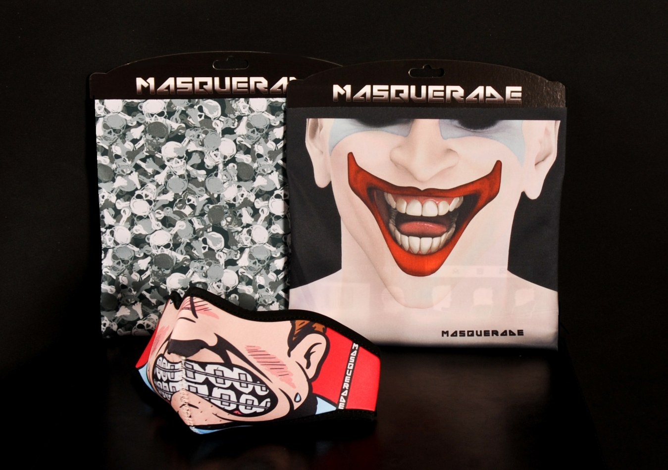 - Facial reversible neoprene Masks dedicated to outdoor activities like cycle,motobike, ski, snowboard, trekking, ... ... About 50 different caracters ( Camo / Skull head / Joker Face/ UE Flags/ Cartoons ... ..)