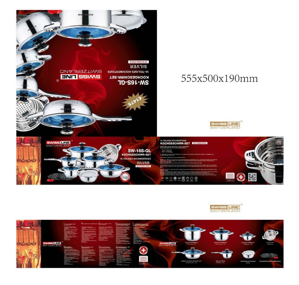 Lot de sets de 16 ustensiles de cuisine en acier inoxydable de marque swissline