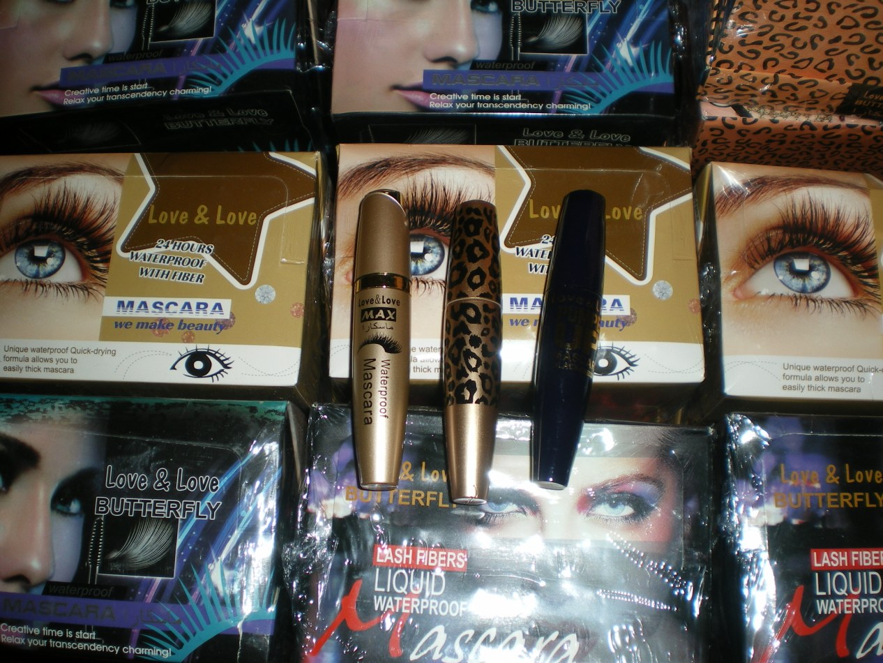 lot mascara noire 120pc, prix 120€,pinceaux pour maquillage 96pc,prix 145€ total 265€