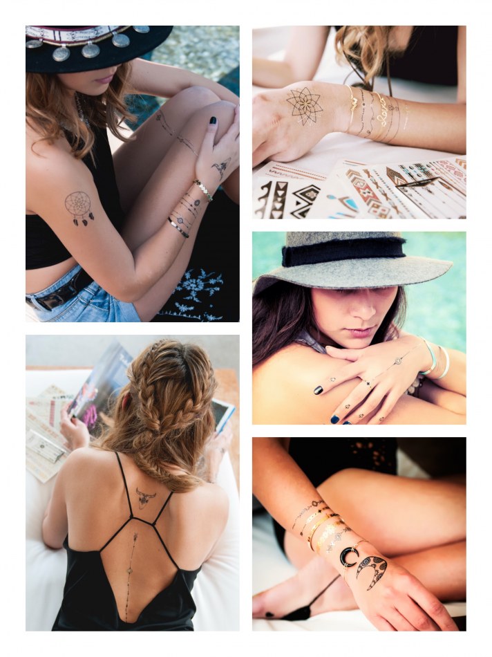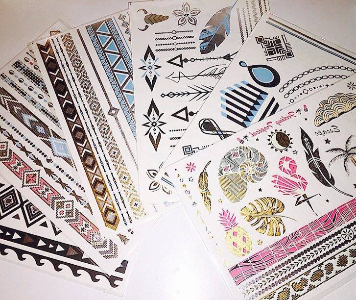 Planches de tattoos différents formats, métallisés. Carnets, mini formats.