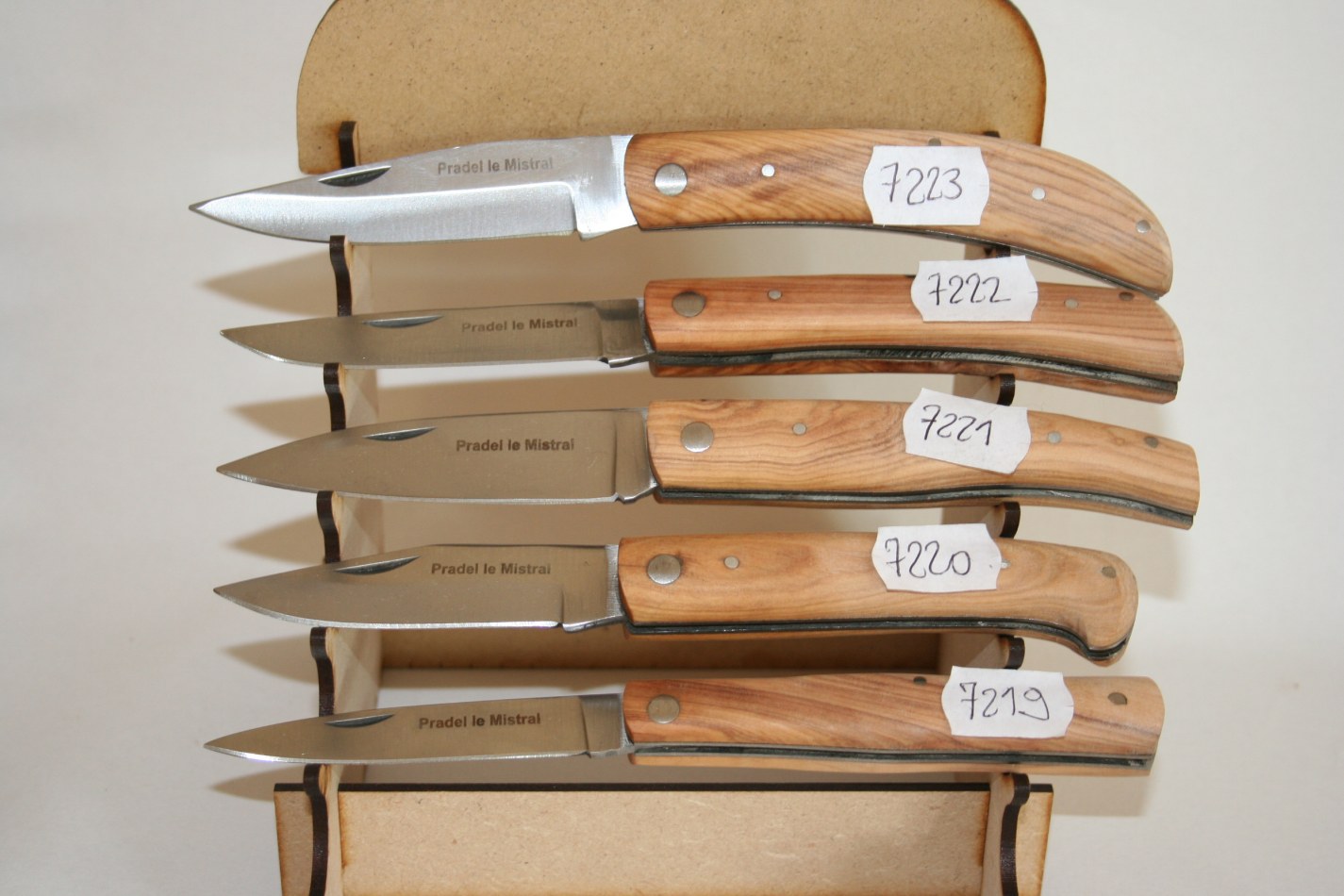 A VENDRE LOT DE 100 COUTEAUX LOISIR MANCHE EN BOIS D'OLIVIER : 5€ H.T.