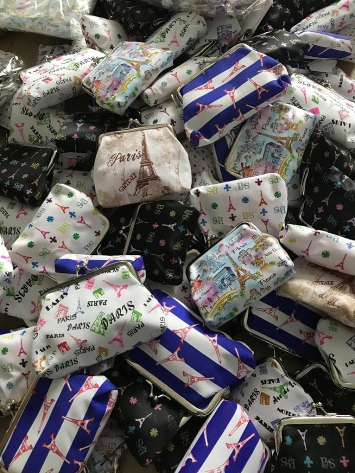 Lot porte monnaie, motif Paris touriste, plusieurs tailles, plusieurs modèles, avec fermeture à l'ancienne.