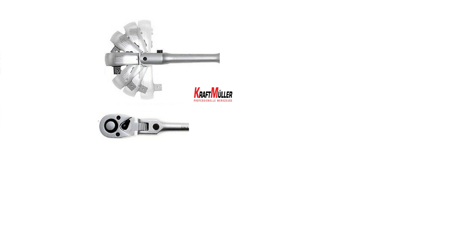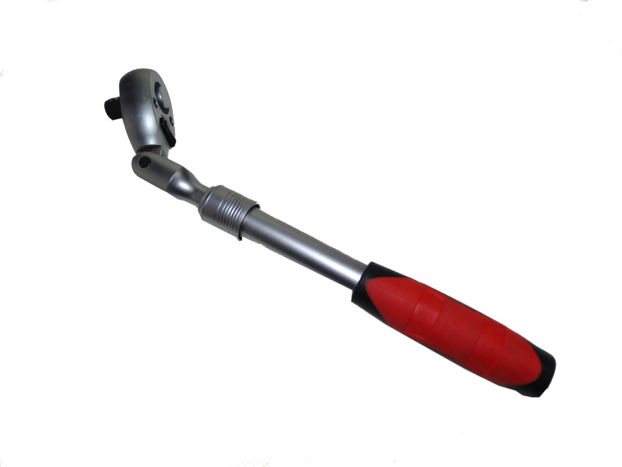 Clé à cliquet extra longue à articulation sphérique et à cliquet compact pour espaces confinés.
