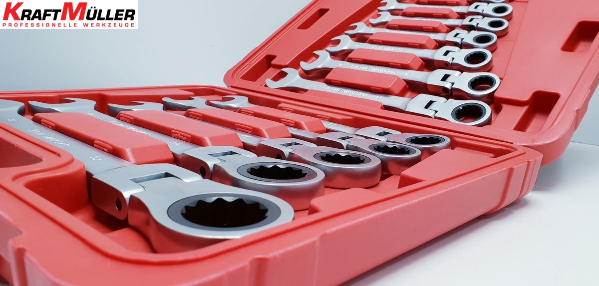 COFFRET CLÉS PLATES À CLIQUET ARTICULÉES 13 PIÈCES KRAFTMULLER