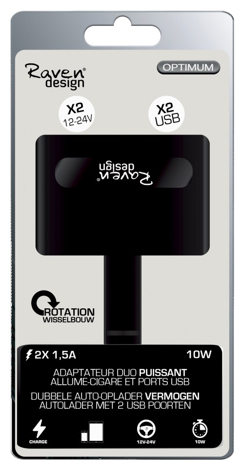 Ce chargeur puissant comporte deux ports allume-cigare 12V qui fonctionne en 12 et 24V (voiture, camping-car, camion), et deux ports