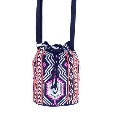Sac à main en 100% coton, avec doublure et une pochette intérieure, existe dans trois coloris, original, ethnique, broder, fermeture cordon serrer, porter épaule ou en bandoulière, fabriquer en Inde.