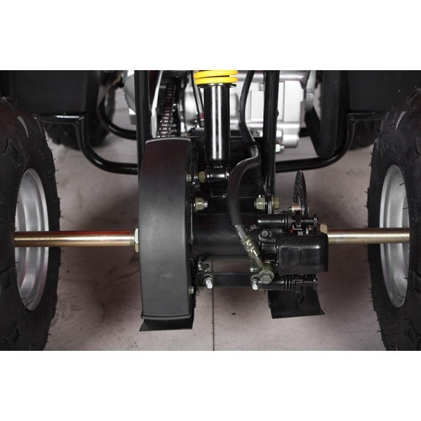 Quad Orion Bigfoot 110cc avec chassis renforcé, idéal pour les débutants avec sa boîte de vitesses automatique.