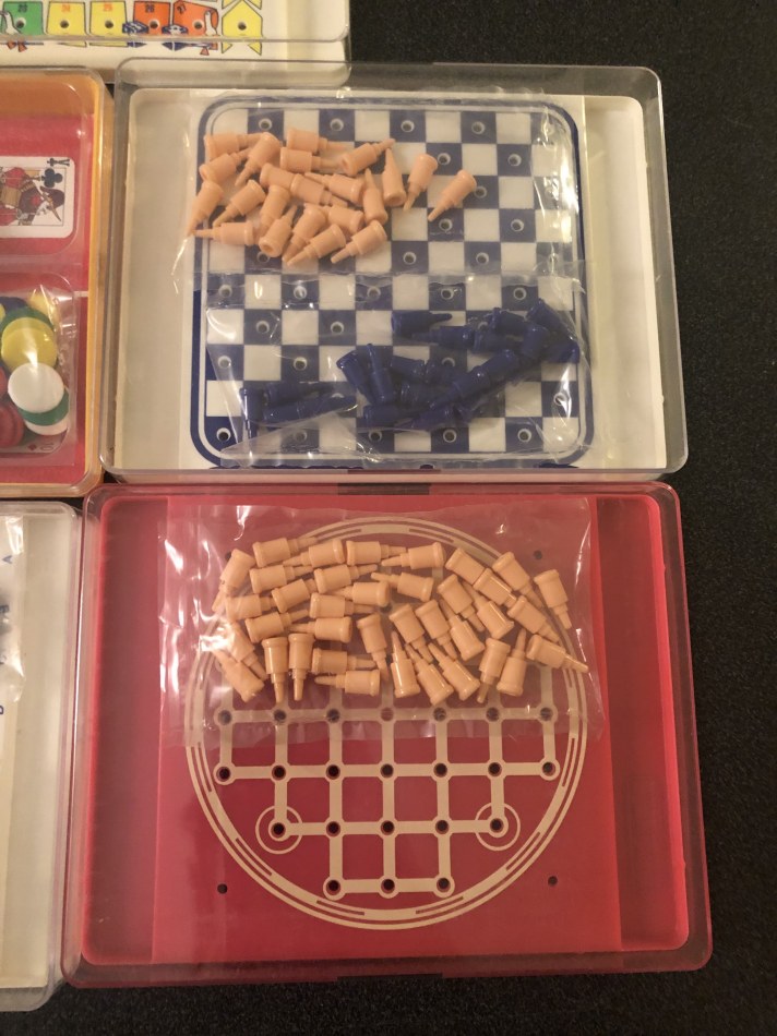 Jeux de dame, jeux d'échec, solitaire, jeux de l'oie et mini poker (nain jaune)