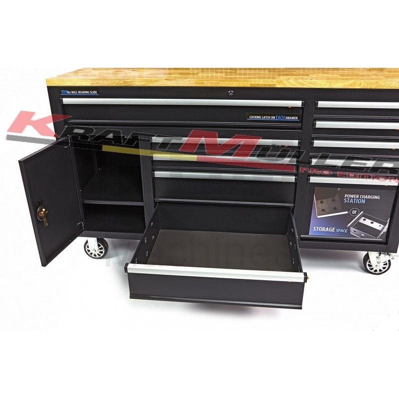 Servante 158 cm avec plateau bois et 10 tiroirs, 1 porte