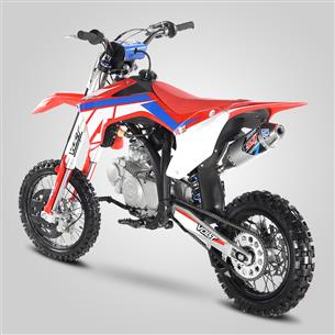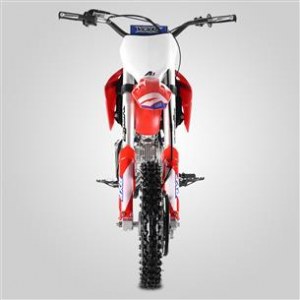 APOLLO vous propose sa nouvelle RXF 140cc, une version plus puissante mais très semblable à la RXF 125cc. Équipée d'un châssis central tubulaire en tubes profilés et d'un bras oscillant en acier monté sur cage à aiguille, elle est livrée avec son guidon fatbar 28,6 mm en acier et des poignées APOLLO noire. Pour plus de confort, cette dernière est pourvue de suspensions efficaces avec une fourche inversée Volt-V-One 810mm avec té en aluminium et un amortisseur arrière Volt-V-One 350. Bien sûr, avancer c'est bien, mais il faut aussi pouvoir s'arrêter, c'est pourquoi la Pit Bike APOLLO RXF OPEN 140 est équipée de frein à disque 190 mm à l'arrière et 220 mm à l'avant, tous deux sur étrier à simple piston. Profitez de toute la performance des pneus Guangli 2,75*14 et 3,0*12 montés sur des jantes en acier avec rayons noir. Dotée d'un débattement de 210 mm, vous pourrez être serein lors de la prise d'obstacle. Pour ne rien laisser au hasard, elle possède une selle Volt racing rouge. Tout comme son homologue, elle est porteuse d'un réservoir de 5,3 Litres. Cette dernière possède un moteur YX monocylindres 4 temps d'une cylindrée 140,3 cc. Elle dispose d'une boite 4 vitesses N1234 et d'un embrayage à bain d'huile. Toujours pour de meilleures performances, l'alésage est de 56/57mm. La carburation est assurée par un carburateur Molkt PZ26 et un refroidissement via filtre à air. Grâce au pot d'échappement Volt PERFORMANCE en aluminium, équipé d'une cartouche E 5.0 en inox, vous évacuerez efficacement les gazs d'échappement. Cette Pit Bike fonctionne avec un démarrage manuel au kick, complété par un allumage incluant un CDI microprocesseur. Pour finir, elle est dotée d'une transmission finale composée d'une chaîne 428 KMC renforcée, ainsi que d'une démultiplication réalisée par une couronne de 43 dents et un pignon de 14 dents. Côté dimension, on peut noter un empattement de 118 cm, une hauteur de selle de 82 cm, une garde au sol de 29 cm mais aussi un poids de 77 kg.
