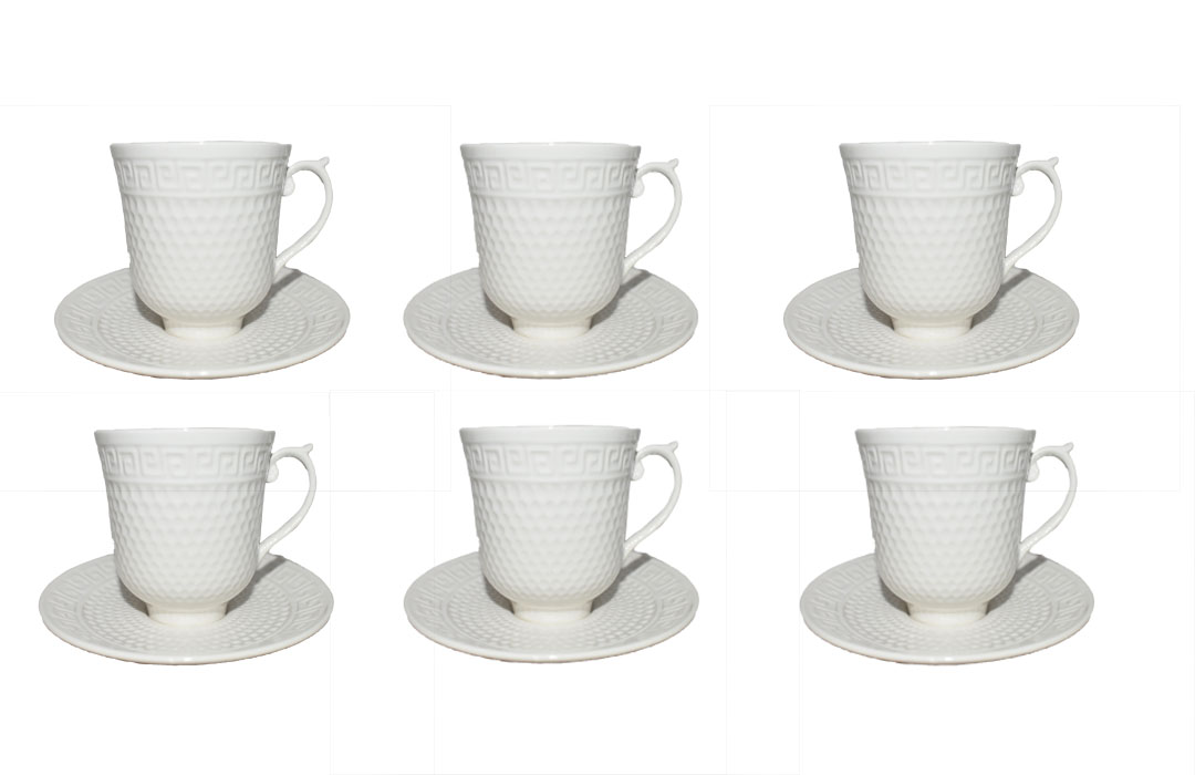 Set Tasses à café avec soucoupes, Céramique, Blanc, 12 unités.