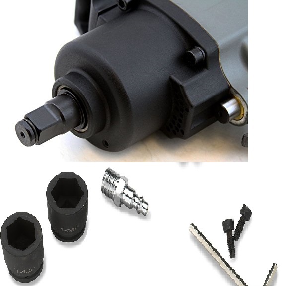 Clé à chocs pneumatique fort avec marteau double de 1 ", 1890NM, avec 2 douilles- 38,41mm