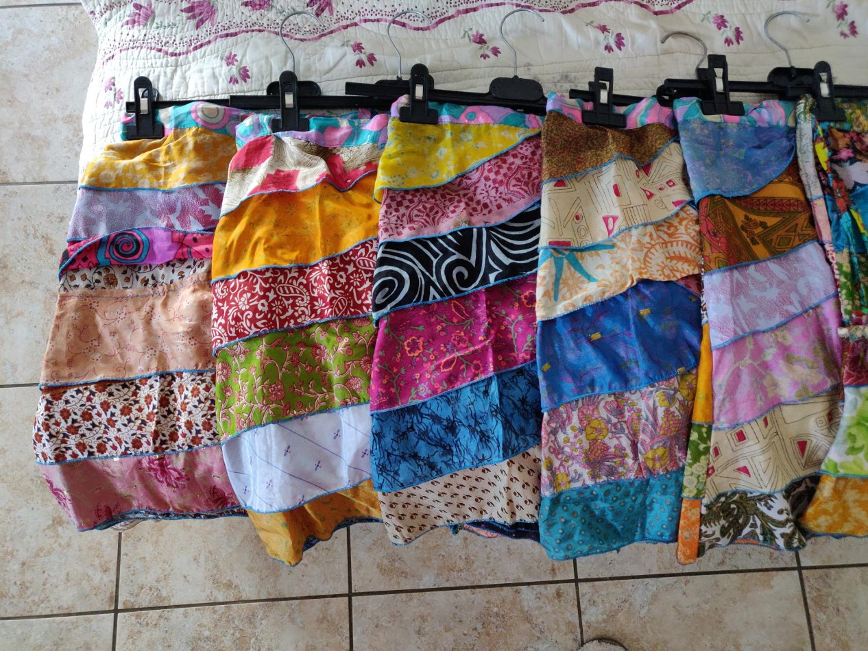 Lot de 13 jupes neuves style indienne - 7 longues et 6 mi-longues - en taille unique, en satin et soie
