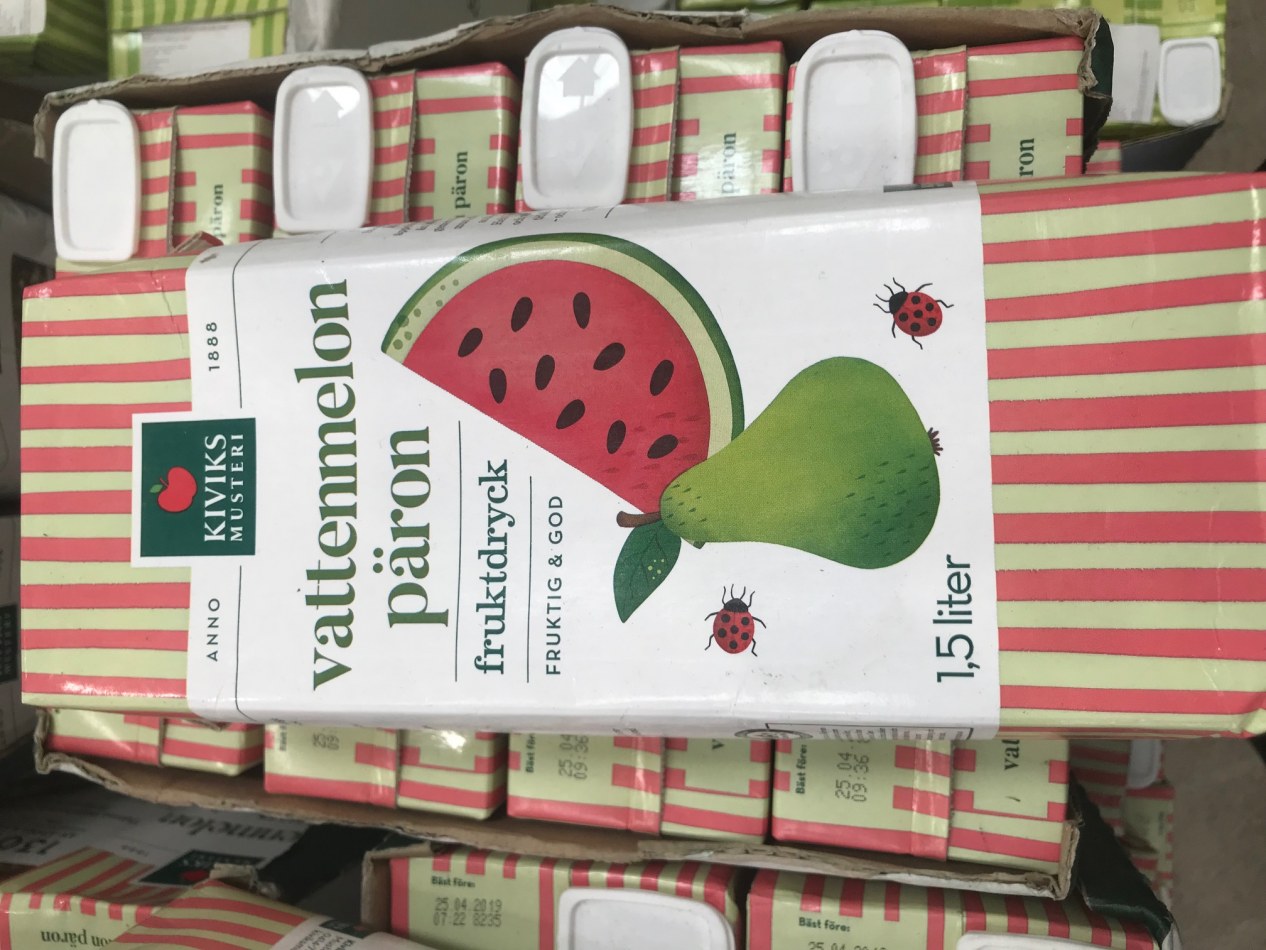 Brique de jus Kiviks Musteri Pastèque poire de 1,5L. Boisson à boire bien frais.