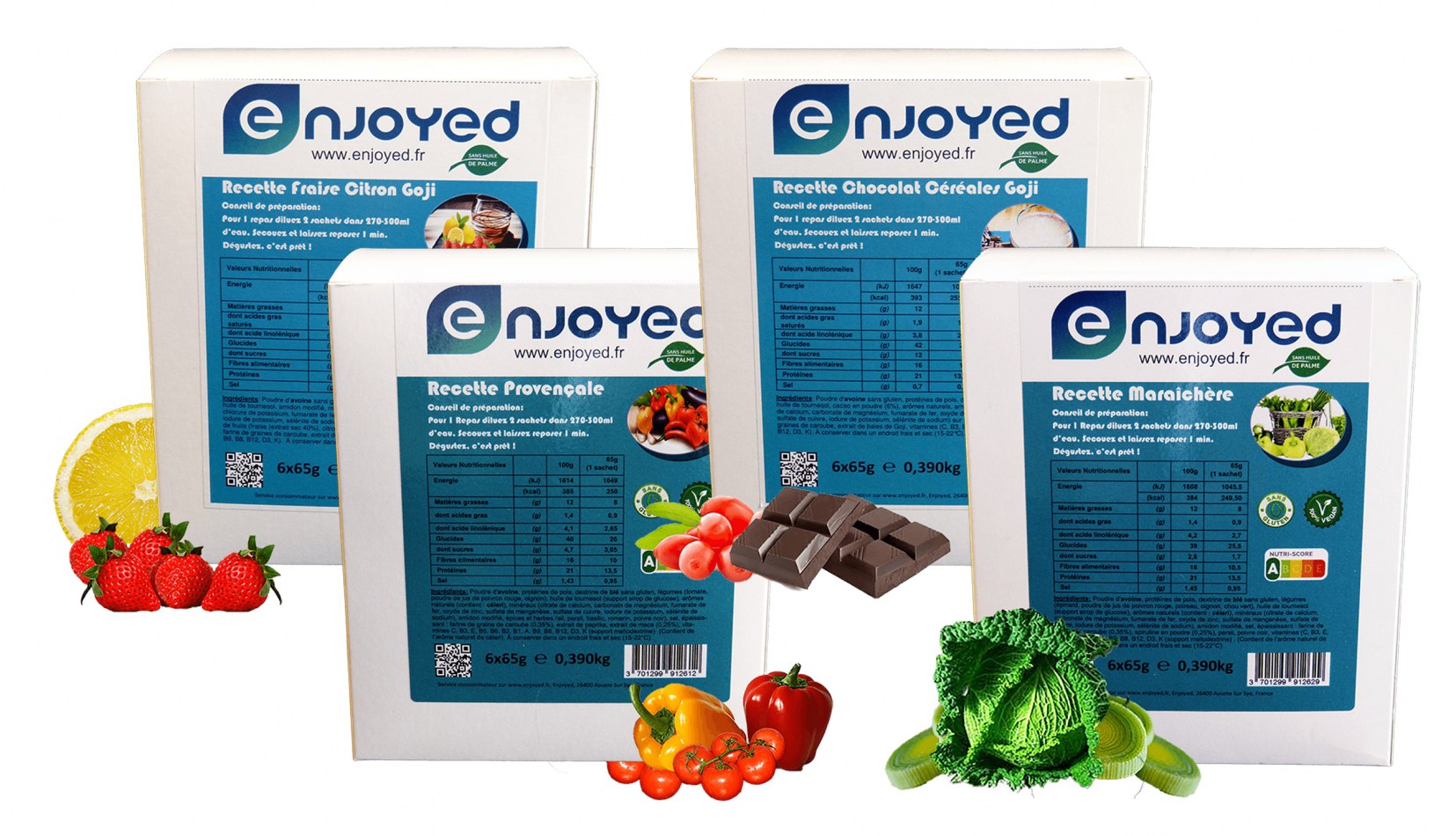 Prix unitaire : 6,15 euros HT par boîte de 6 sachets repas Enjoyed. Minimum de commande : 1 lot aléatoire de 1000 boites.