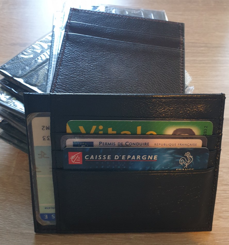 Porte carte 100% cuir dispo en noir et marron foncé,4,90euros ttc.