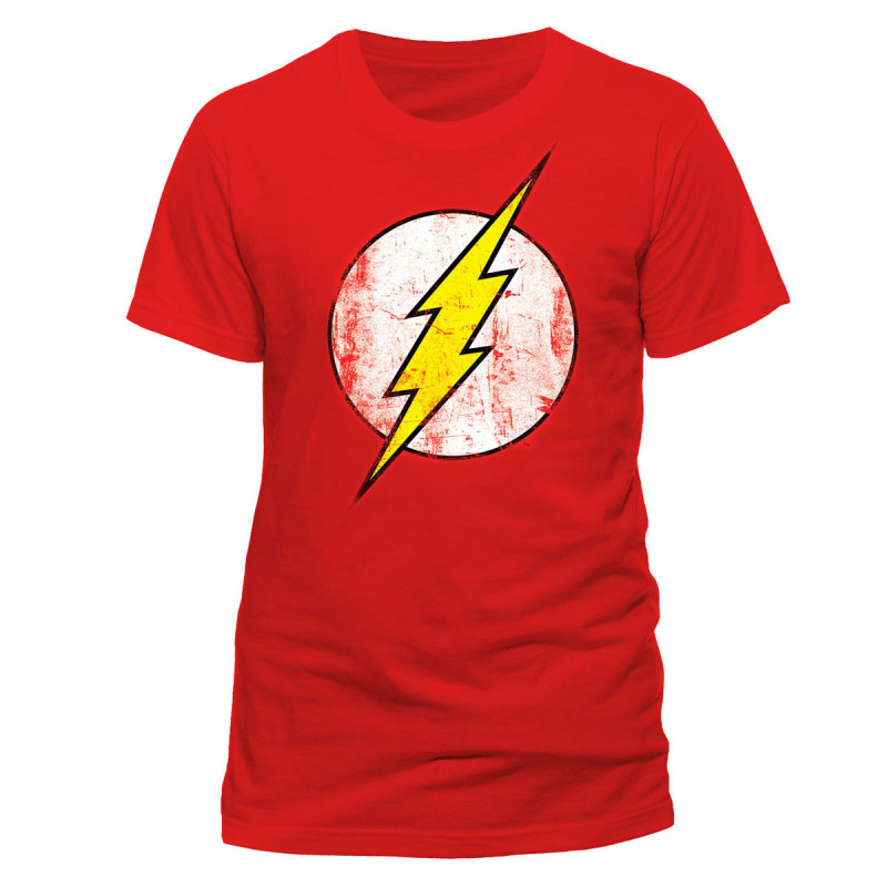 Modèle FLASH avec logo style usé sur fond rouge. Un grand classique !