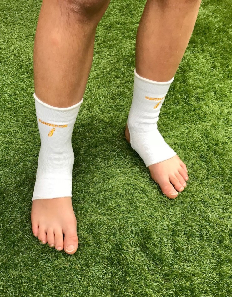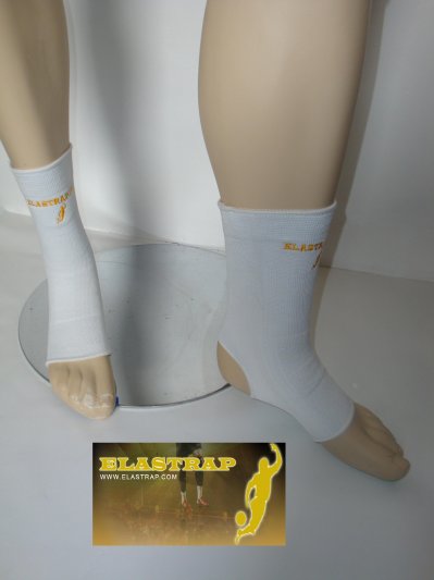 Nouvelle paire de chevillères blanches enfants, un long strap élastique maintenant la cheville et réduisant les blessures, recommandées par les professionnels.Tissu respirant pour un maximum de confort, pour les muscles, les ligaments, les tendons et des articulations. Porter Elastrap pour la compression, le soutien et le confort.