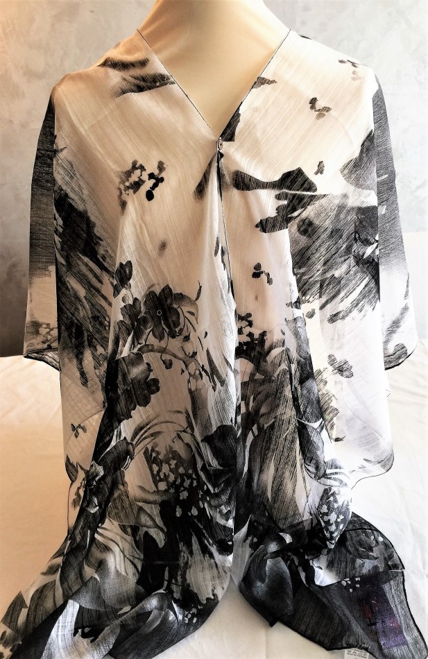 Ce foulard multifoncation se transforme en puncho légé et petite chemisette.