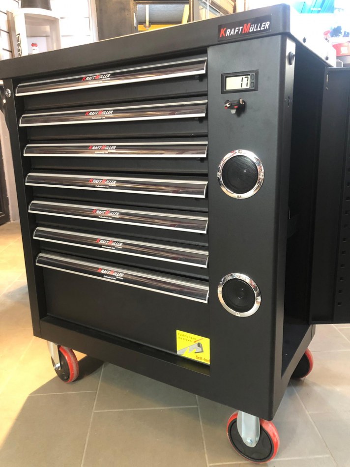 ARTICLE NEUF NOUVEAU MODÈLE 2019 MARQUE ALLEMANDE Servante d'outils professionnels complète Kraft Müller Nouveau modèle Composée de 7 tiroirs pleins comprenant 699 outils Contenant une clef dynamométrique ACIER CHROME VANADIUM - QUALITÉ PROFESSIONNEL DÉTAIL DU PRODUIT: -Poignée ergonomique intégrée dans le plan de travail. -Plan de travail en matériaux antichocs. -Tiroirs montés sur glissière télescopique avec roulement à billes...