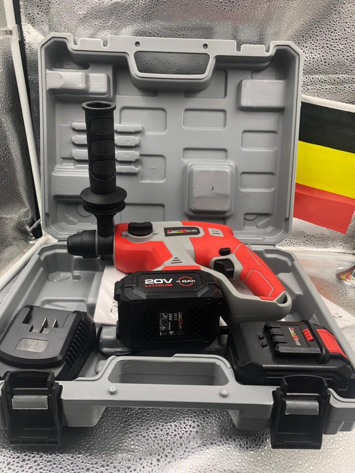 - Ce marteau rotatif contient une batterie de grande capacité de 4,0 Ah, dotée de la protection des cellules pour la protection contre la surcharge, la décharge excessive et la surchauffe. La batterie Lithium-Ion hautes performances fournit une puissance énorme et une autonomie maximale.