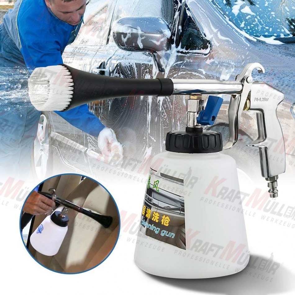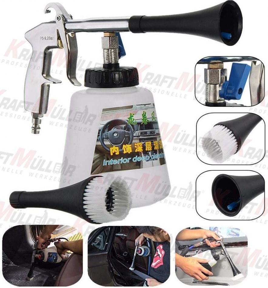Ce pistolet de nettoyage de voiture à haute pression à impulsions pneumatiques adopte un alliage et des matières plastiques de haute qualité, ainsi qu'un processus de fabrication de qualité supérieure, doté d'une qualité qualifiée et d'une excellente capacité de nettoyage. Le pistolet de nettoyage de voiture est livré avec une bouteille en plastique pour l'arrosage et en appuyant sur la poignée, l'eau s'écoule par le petit tuyau et arrive à la brosse à buse en pulvérisant sur les endroits sales. Et il peut être utilisé avec des liquides de nettoyage, qui peuvent éliminer efficacement la saleté et la poussière à l'intérieur de la voiture.