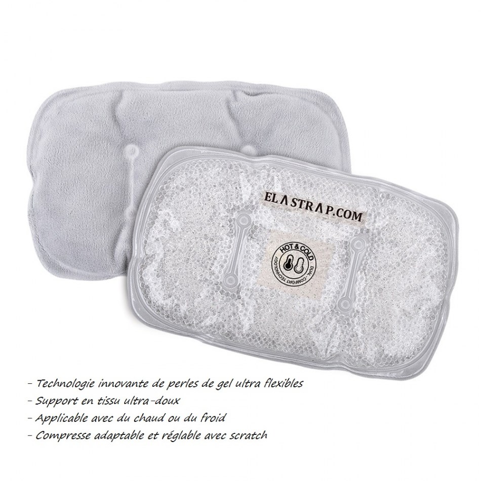 Compresses avec sangle de maintien à scratch disponibles pour chaque partie du corps (cheville, mollet, genou, cuisse, dos, coude, poignet, nuque, épaule, visage... )