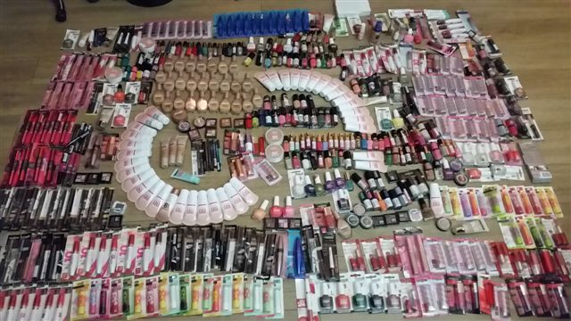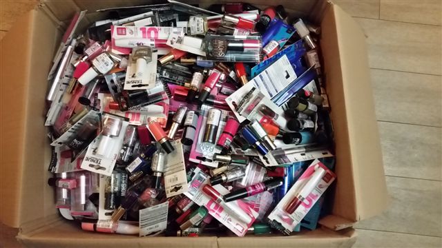 A saisir opportunité sur un lot de maquilage essentiellement de grande marque composé de 20% de mascaras et fonds de teint, 28 % de vernis, environ 35% de rouges à lèvres, 15% de crayons et liners (majoritairement noirs), le reste du lot est composé d'ombres à paupières et autres produits.