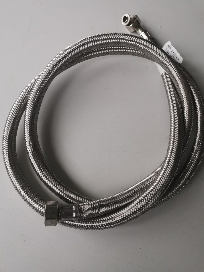 CARACTÉRISTIQUES : Tresse en fil inox AISI 304. - Couverture minimale de 95 %. - Raccord en laiton nickelé. - Douille de sertissage en INOX. - Température et pression de service : 5°C à 90 °C - 10 bar. - Plage de PH de l'eau tolérée : entre 6 et 8. - Rayon de courbure minimal : 45 mm.