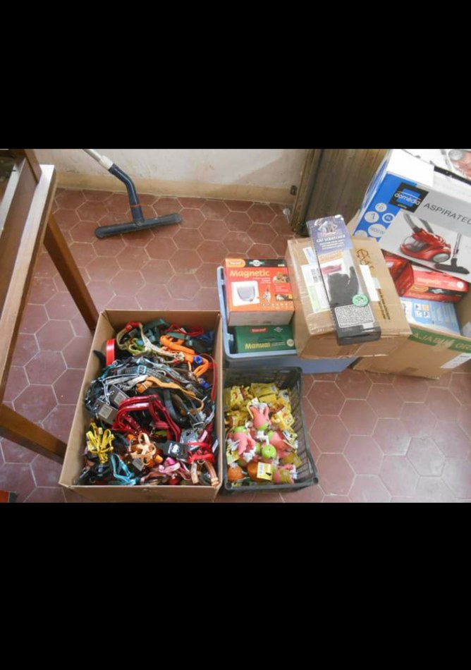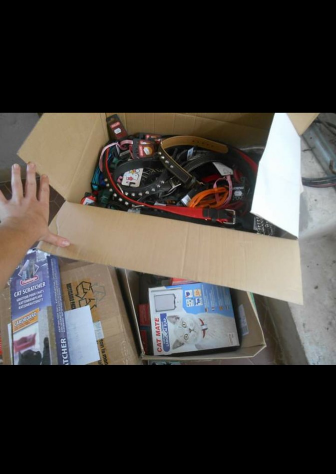 - des centaines de harnais, colliers, laisses, muselières. Certains en cuir, toutes les tailles chats et chiens. valeur revente totale environ 2000€.
