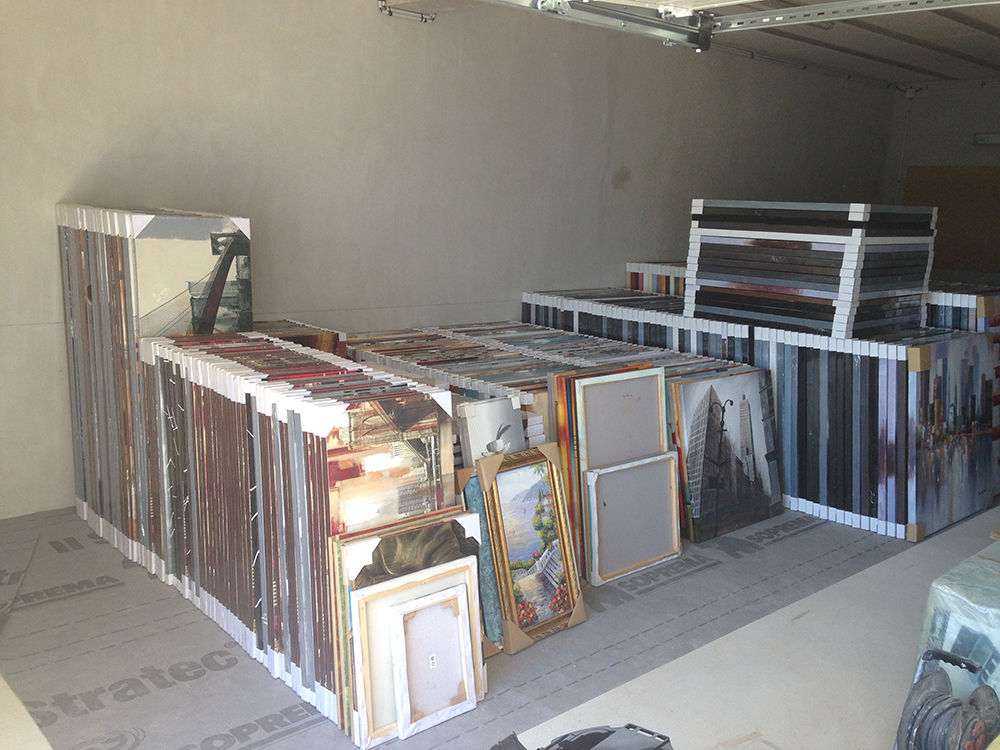 Tous sont tendus sur un chassis en bois, filmés et protégés par des coins cartons peints à la main (peinture à l'huile)