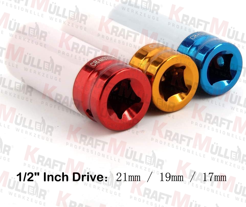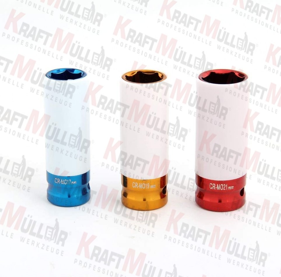 Douilles à chocs (lot de 3) : 17 mm de profondeur, 19 mm de profondeur, 21 mm de profondeur