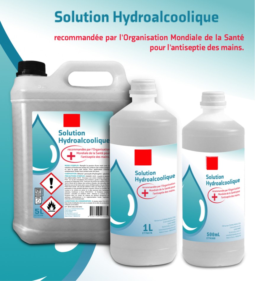 GEL HYDRO-ALCOOLIQUE FABRIQUE EN FRANCE NORME EN14476