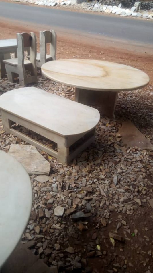 Meubles en pierres polies ou des pierres pour construction et décorations.