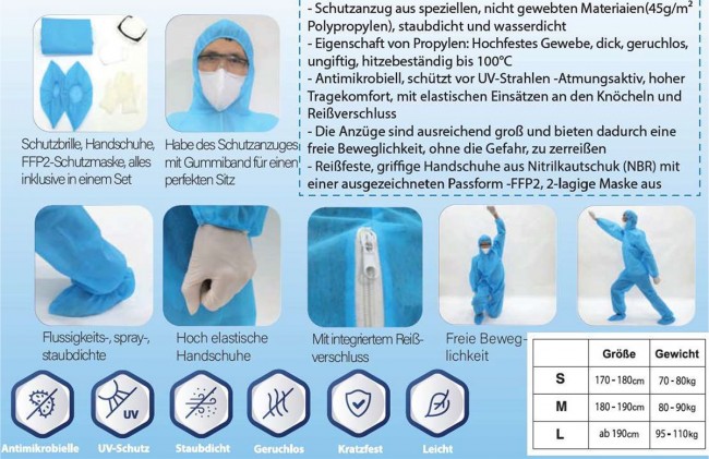 -1 Combinaise de protection avec capuche / protection contre de nombreuse substances chimiques à partir de matériaux non tissé.