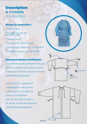 Ces blouses de protection sont conçues pour la protection dans le cadre des risques mineurs uniquement