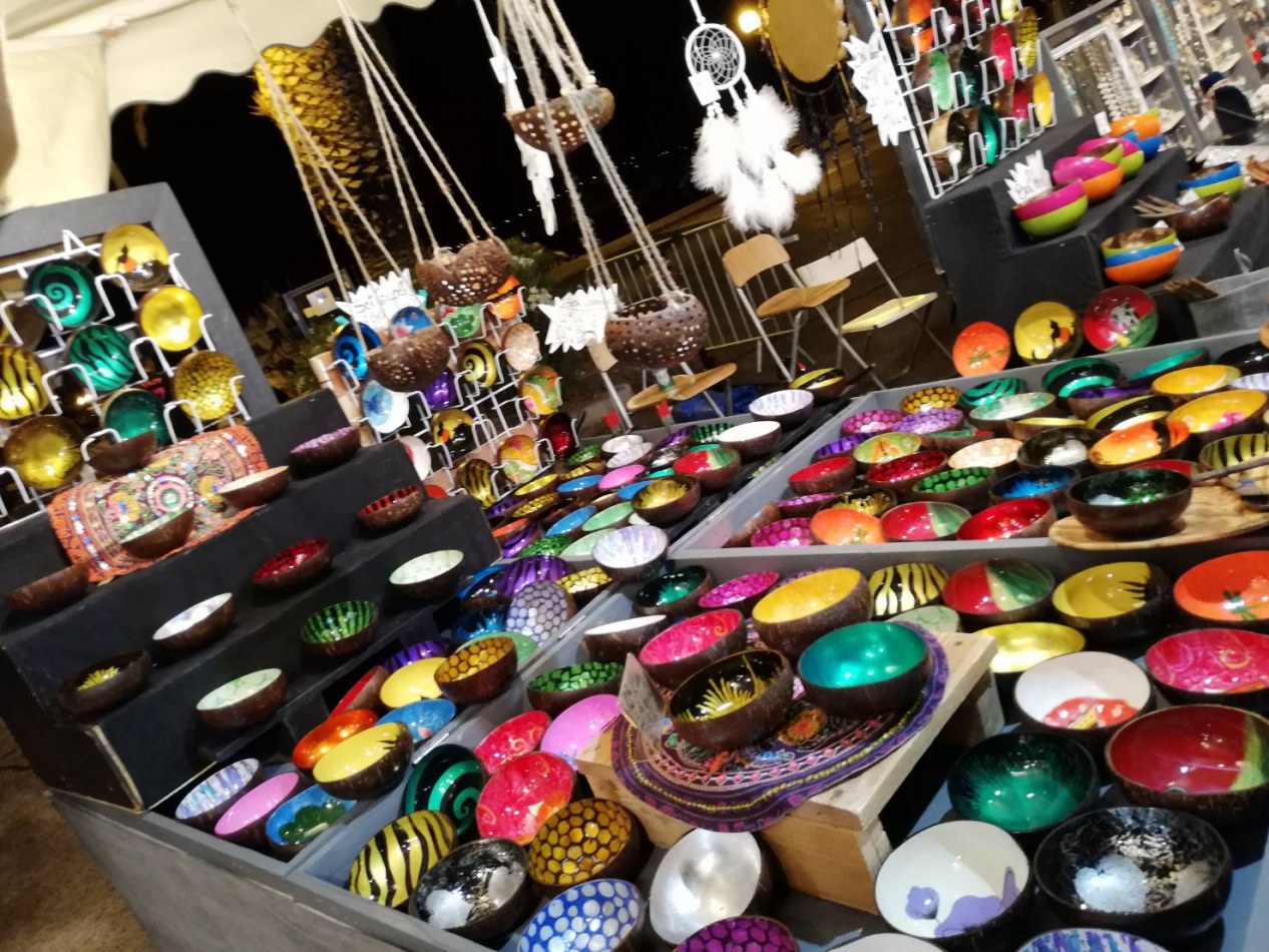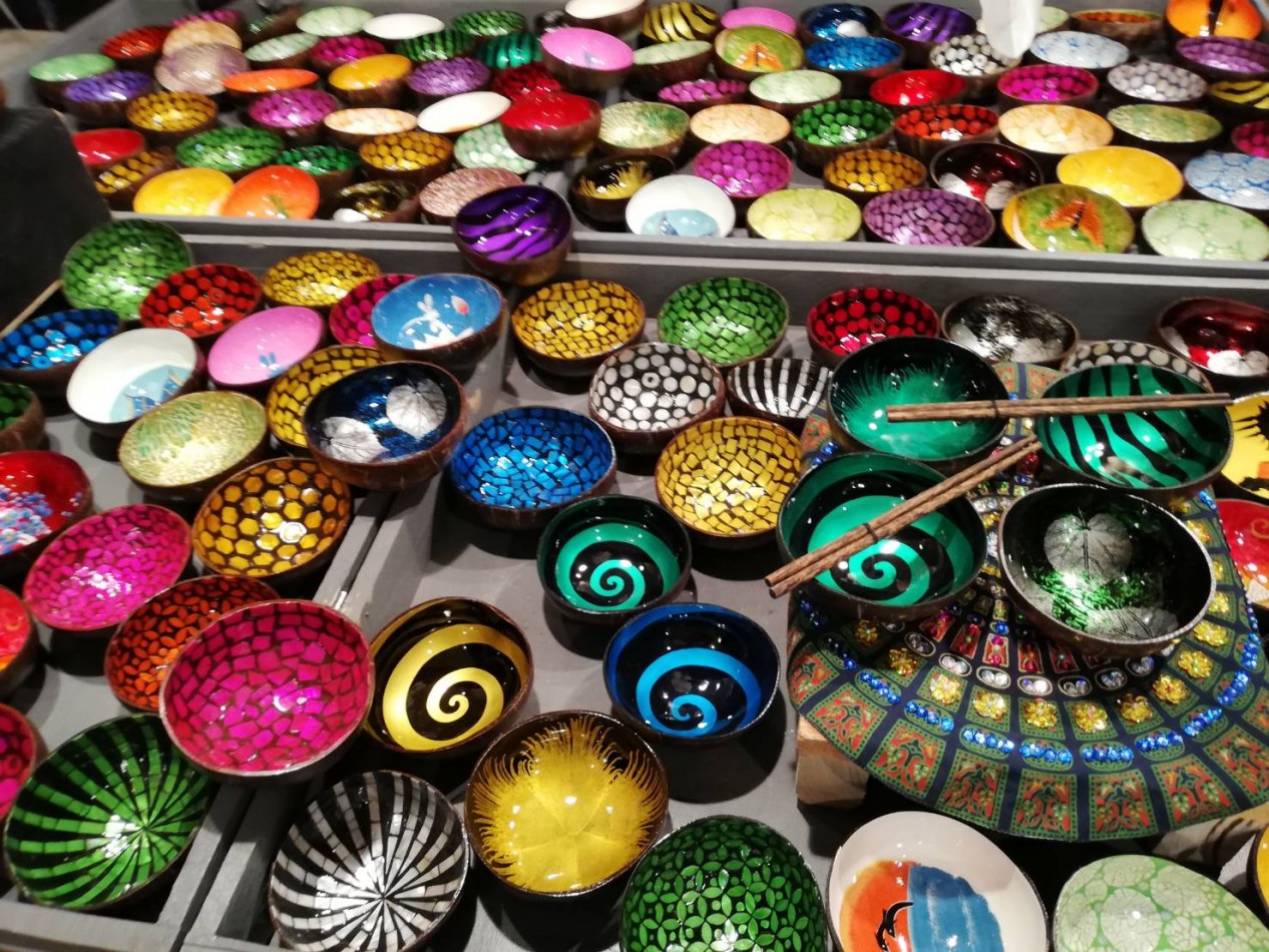 Lot de bol en noix de coco naturelle emaillee originaire du Vietnam.