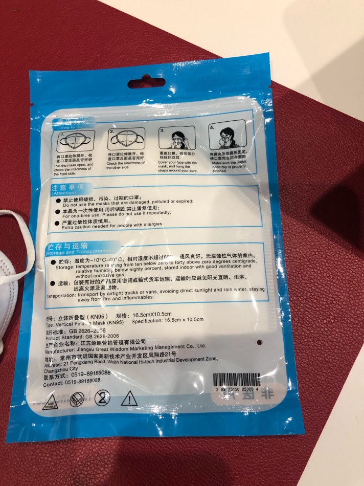 Emballage : 3 masques par sachet, et 900 sachets par cartons