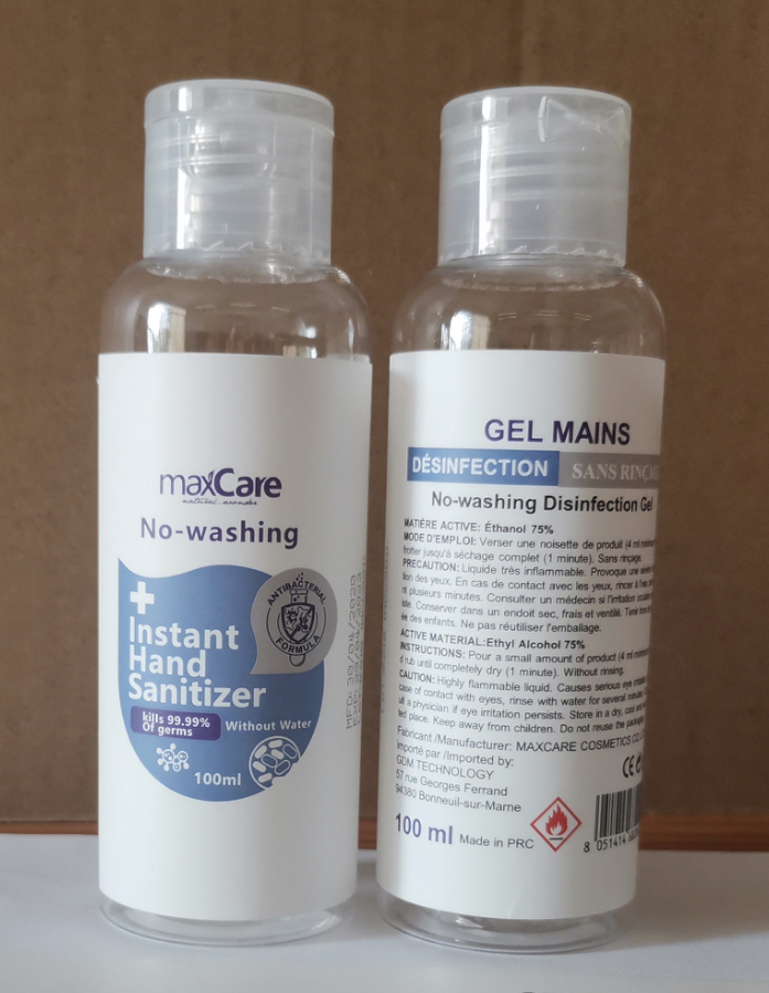 Gel hydroalcoolique 100ml, norme CE, Cretificat TUV, stock disponible 600000 pcs à Paris. Prix 0.5€/pcs. Commande minimal 1000 pcs. Tél : 06 51 96 76 48.
