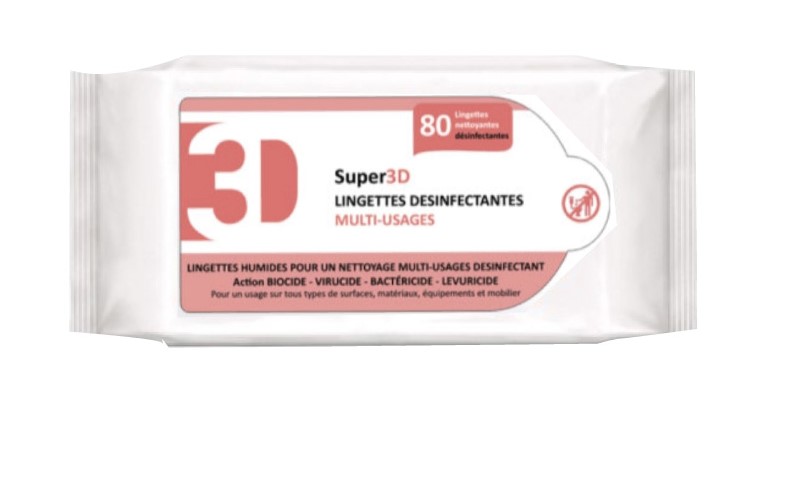 - 1 paquet de 80 Lingettes multi-usages imprégnées d'une solution désinfectante