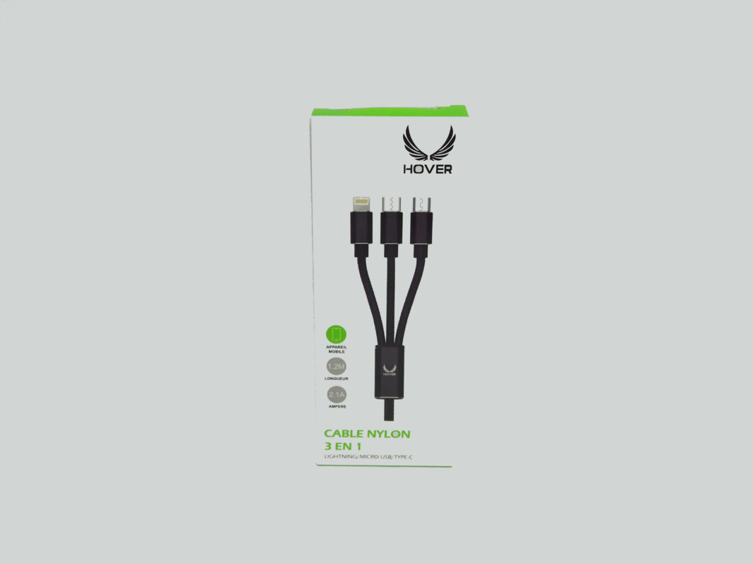 Chargeurs voitures et secteurs, câbles 1 et 2 mètres, écouteurs ainsi que support smartphone pour voitures.