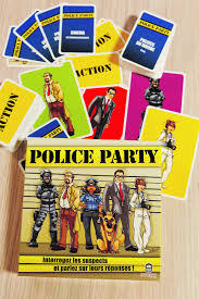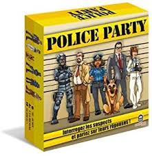 Police Party, un jeu familial, amusant et plein de questions intéressantes (QCM) sur l'univers policier. Enquêteurs célèbres, étoiles de shériff, déminage, espionnage, animaux, cambriolages rigolos, faits insolites, polices du monde, séries TV... Les joueurs parient sur les réponses données par les autres joueurs pour gagner des points et devenir le meilleur policier. Un jeu familiale qui n'aborde aucune question sérieuse ou législative mais seulement drôle, insolite ou surprenante.