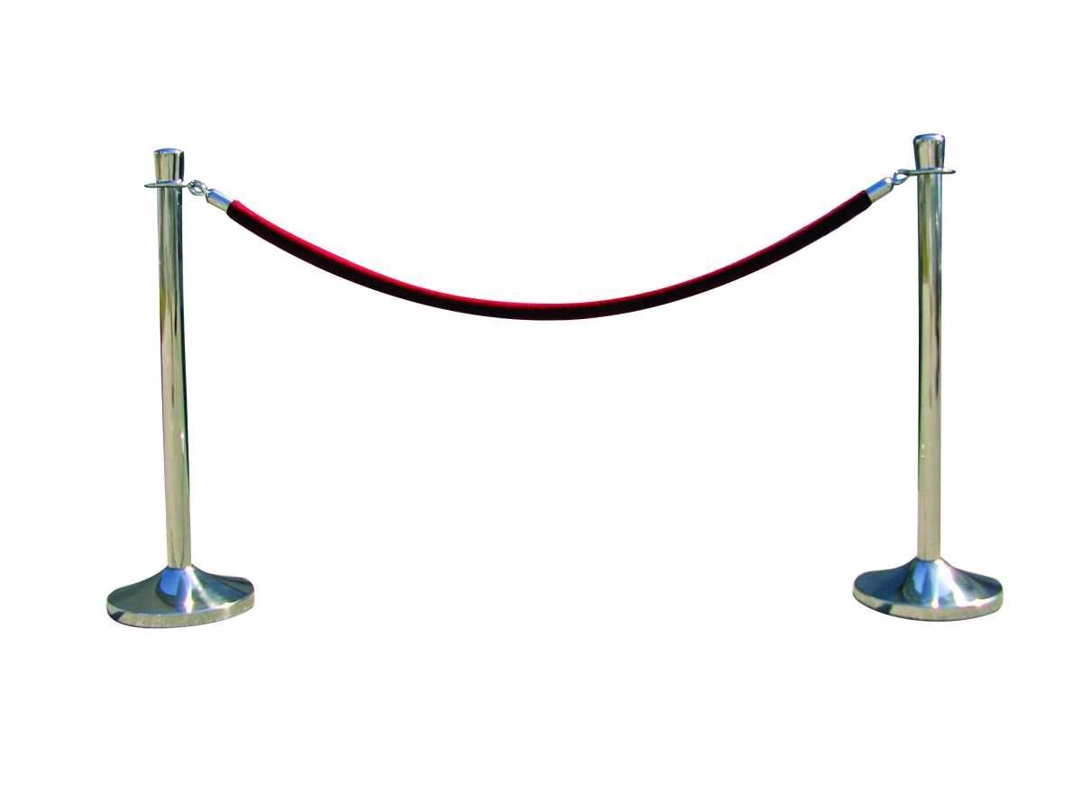 LOT DE 10 POTEAUX DE GUIDAGE À CORDON - GAMME PRESTIGE. + 9 cordons velours bordeaux 1.50m