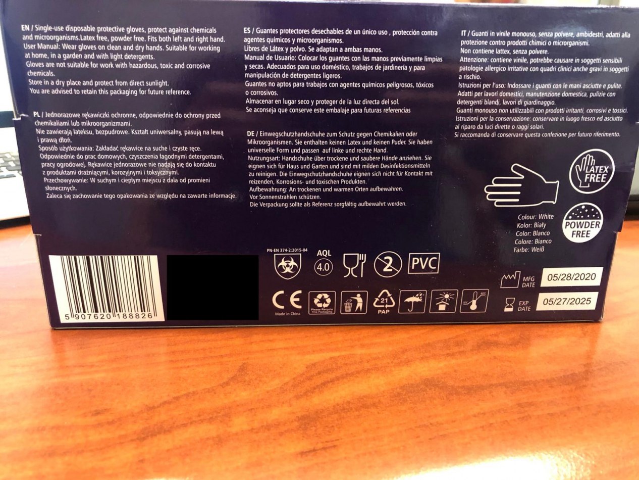 Gants Vinyle en boîte de 100 taille M-L-XL aux normes ( EN 374 et EN420 ) bh
