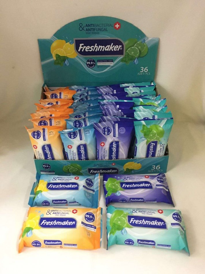 Lingettes anti-bactériennes et anti-fongiques 15pcs vendues par présentoir de 36 paquets.