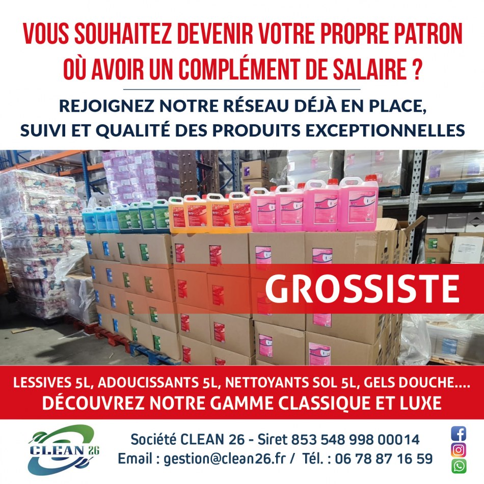 CLEAN 26 Nos produits sont de très bonne qualités, présents dans beaucoup de secteurs (départements) en France et Belgique depuis quelques années. Enormes gamme de produits (lessives, adoucissants, nettoyants sols luxe, gels douches luxe, parfum d'ambiance, dégraissants... ) Gamme luxe et classique, plus d'une centaine de réferences validé par nos clients ! Nos produits sont aux normes européennes, avec un suivi en laboratoire, fiches sécurités disponible, étiquetages ... Soyez...