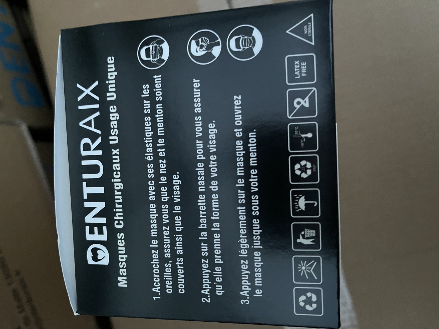 - Masque de protection réspiratoire jetable 3 plis de qualité chirurgicale.