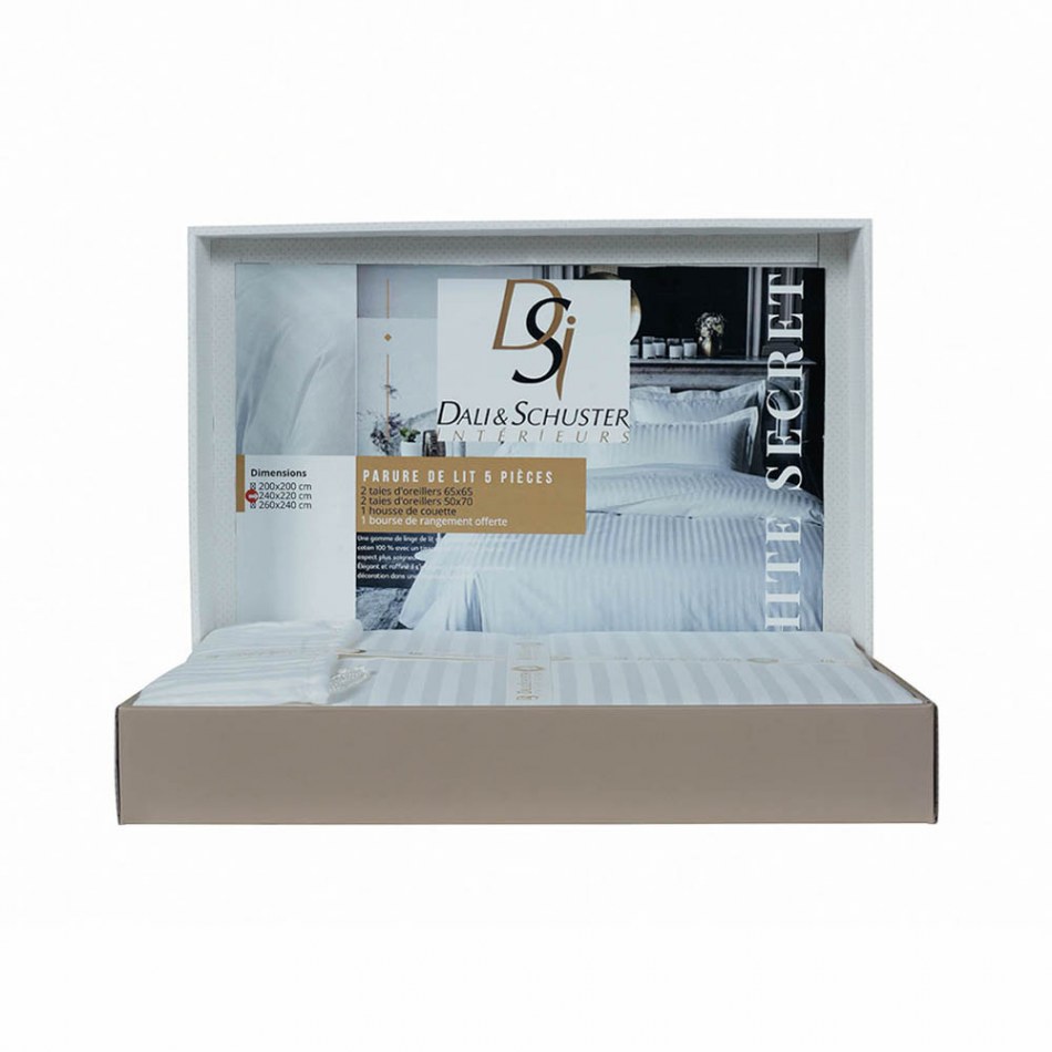 - Coffret parure de lit " White Secret" 220 x 240 cm = 60 pièces: