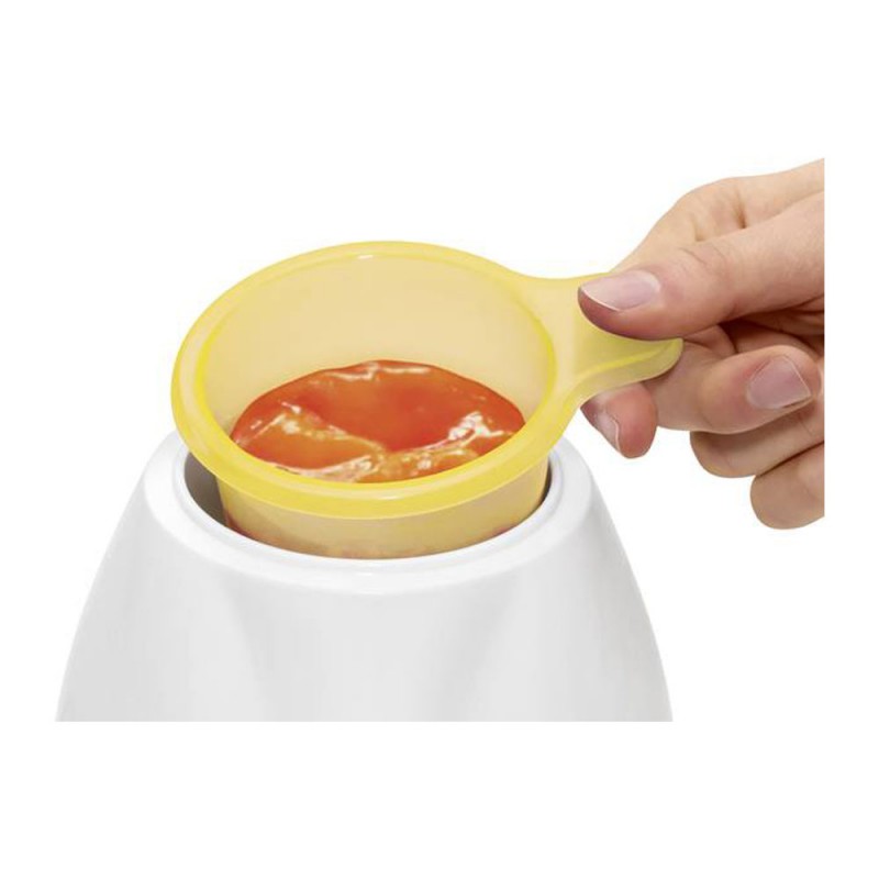 Caractéristiques : réchauffe doucement et uniformément les aliments pour bébé - convient pour les bouteilles et les verres standard jusqu'à 70 mm de diamètre - contrôle de température sans étape (40°C à 100°C) - fonction spéciale pour garder les aliments du bébé au chaud - tasse accessoire et couvercle - 220-240 V, 50Hz, 100 W
