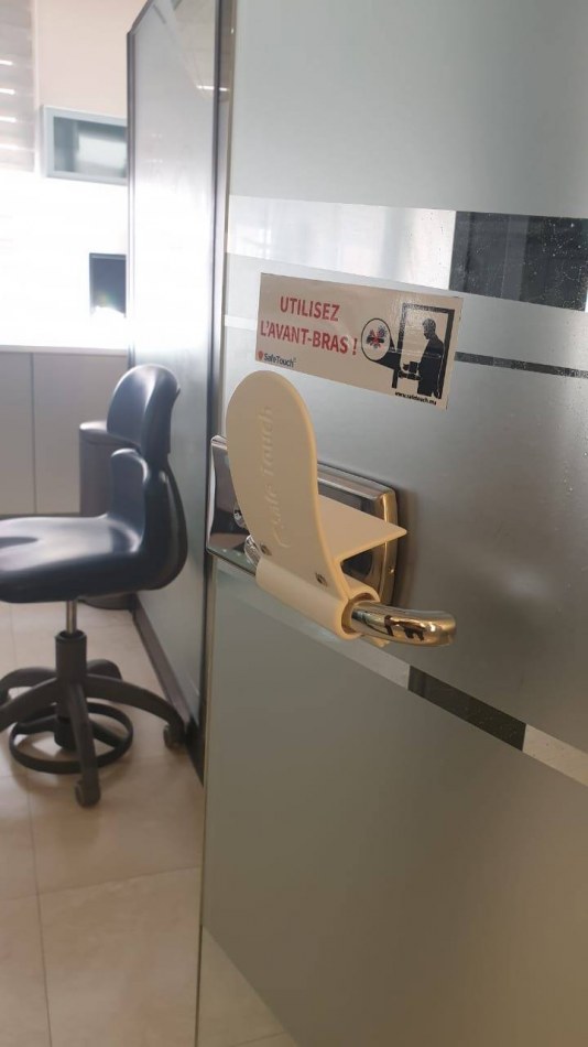 Ouvrir la porte d'un geste simple avec l'avant bras diminue le risuqe de contamination par le Coronavirus via les poignées de portes à ZERO.